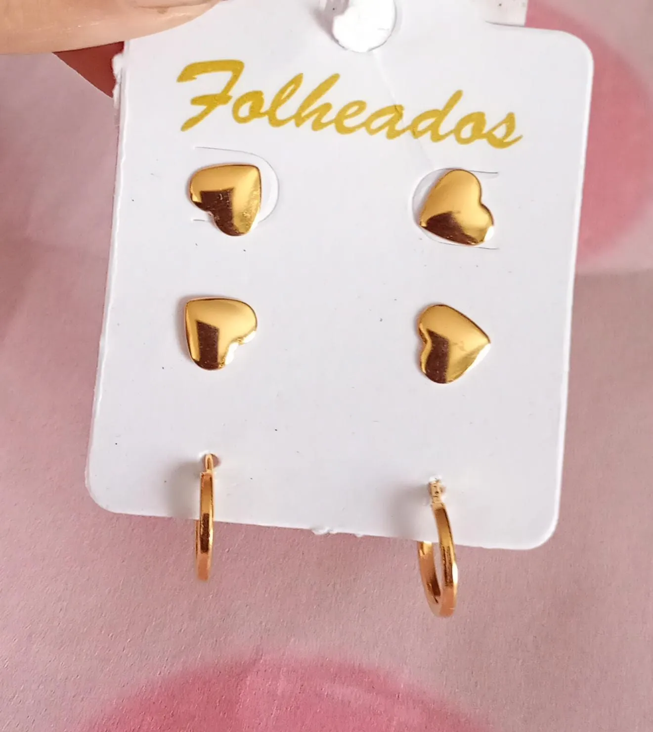 Trio coração e argolinha dourado