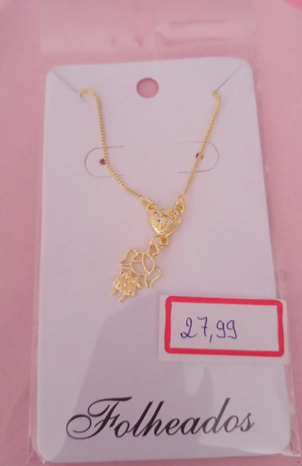 Colar Filhos pingente de Coração Cravejado na Microzircônia Dourado Filha (Menina)